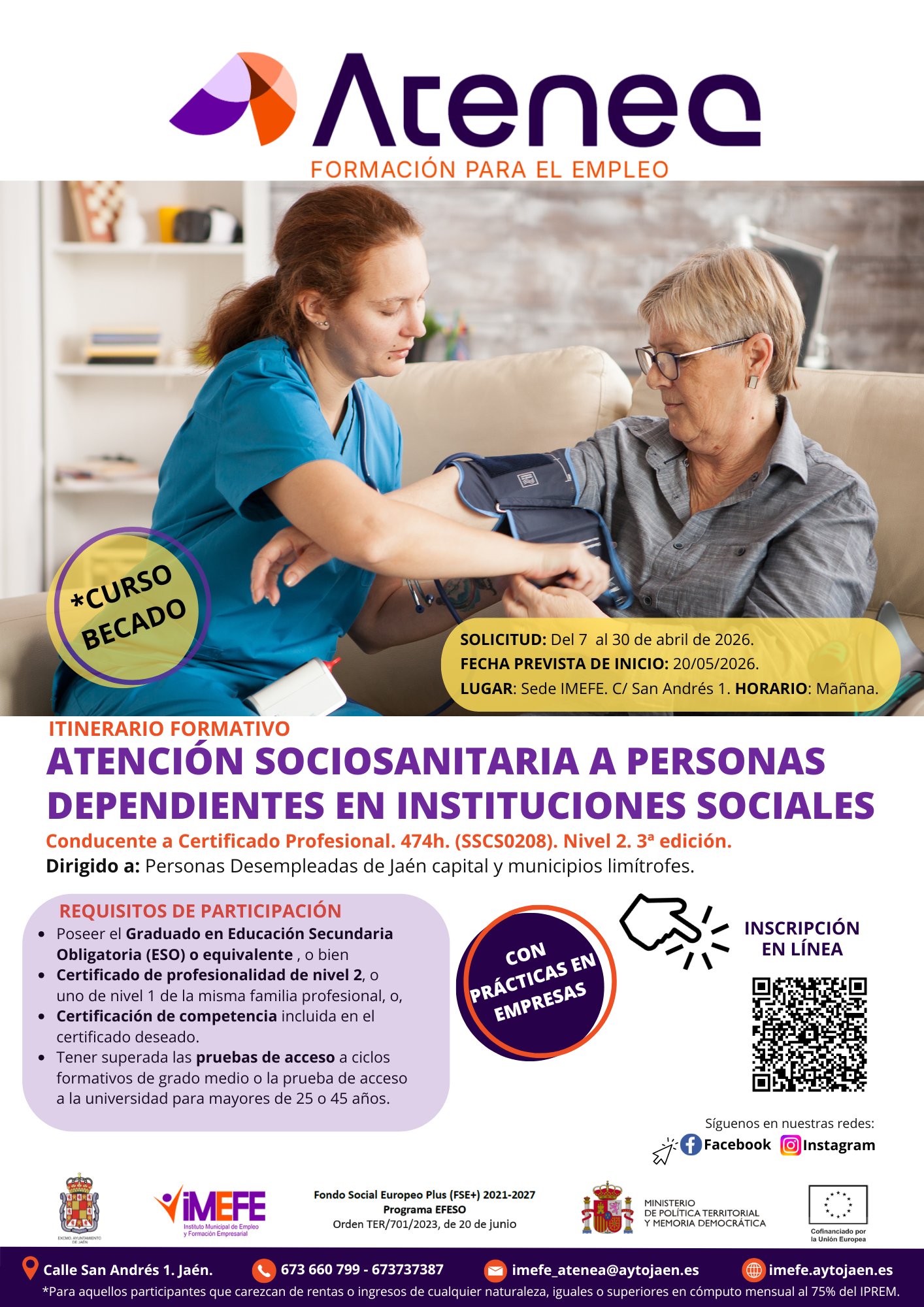 CARTEL ATENCIÓN SOCIOSANITARIA A PERSONAS DEPENDIENTES EN INSTITUCIONES SOCIALES. ATENEA